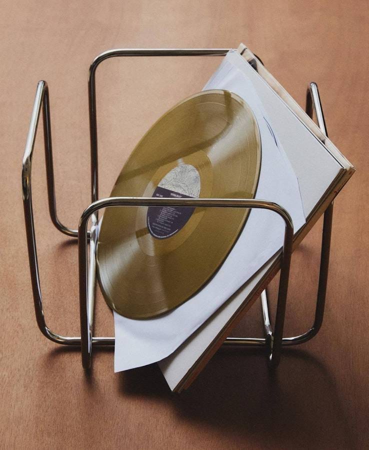 Soporte para discos de vinilo / La piedra del baño principal, pasillo y algo del despacho, de Caravaca, una caliza Alba